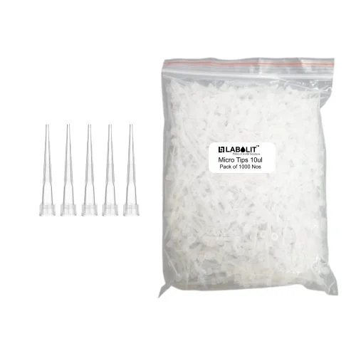 Labolit 10 µl Micropipette Tips are precision-moulded consumables designed to deliver accurate and reproducible liquid handling in routine and sensitive laboratory applications. Manufactured from high-quality, virgin polypropylene, these tips ensure excellent chemical resistance, low retention, and consistent performance.